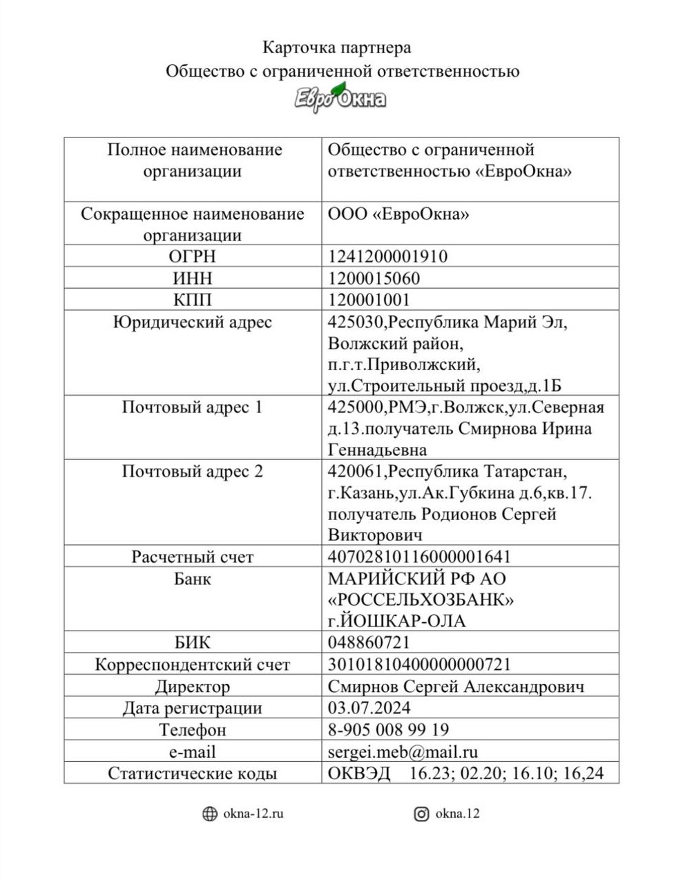Карточка партнера